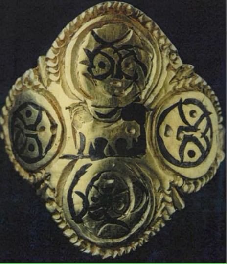 In 1997 vond Pieter de Jong met zijn metaaldetector deze unieke ring. De ring is van goud, weegt slechts acht gram en heeft en een unieke decoratie. We zien in vier cirkels, naast elkaar geplaatst in een soort klaver-(of kruis-)vorm vier geabstraheerde hoofden. In het midden zien we nog een moeilijk te ontwaren figuur. Aangenomen wordt dat het hier de vier evangelisten worden afgebeeld met in het midden het Lam Gods. De ring wordt gedateerd in de negende of tiende eeuw, toen de Nederlanden net gekerstend waren.